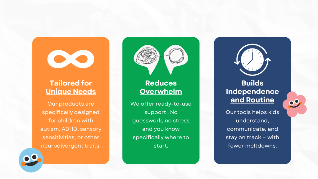 We create inclusive educational resources, activities, and tools designed to meet the unique needs of neurodivergent learners, children with disabilities, and those who thrive with a little extra support.