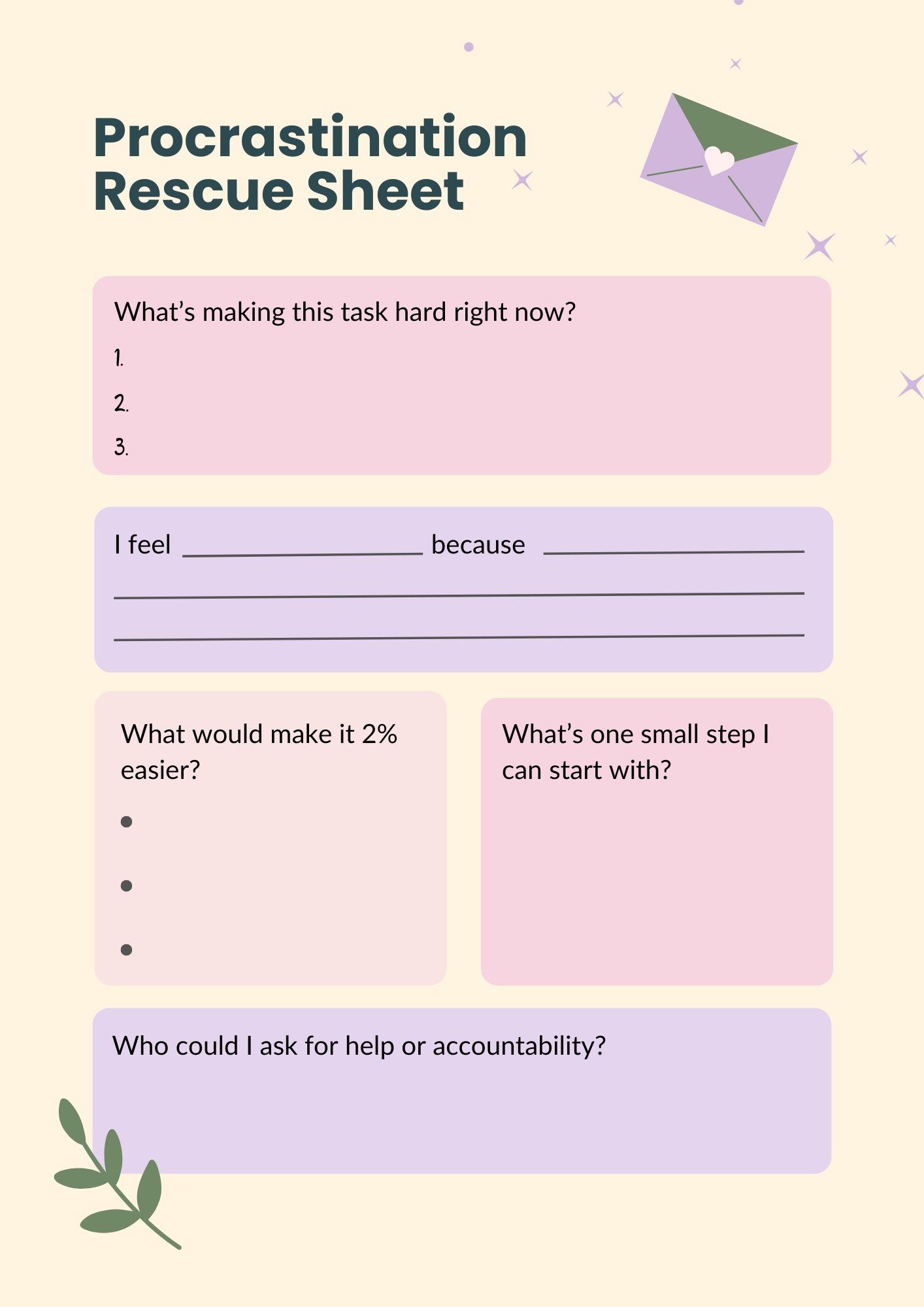 ⚡ Procrastination Rescue Sheet – beat executive dysfunction gently
